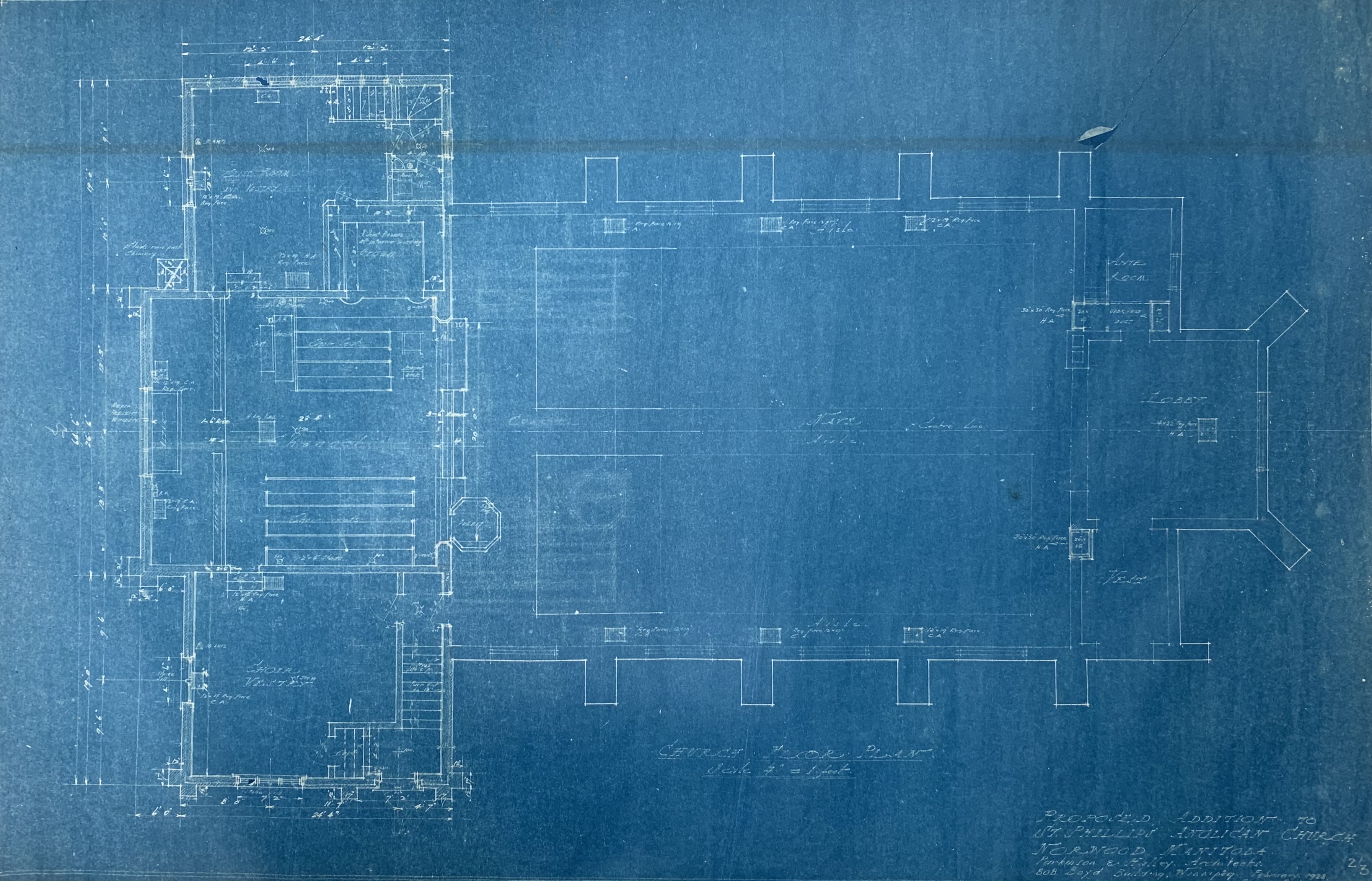 The historic St. Philips Anglican Church and Memorial Hall is located at the corner of Taché Avenue and Eugenie Street in Winnipeg. The church, facing Coronation Park, has stood on this site since 1904 when it was first constructed by the Rat Portage Lumber Company. The corner stone was laid in 1904 by Lady Agnes Schultz, president of the Council of Women of Winnipeg, and wife of the former Lt. Governor of Manitoba. The church opened for services the following spring, and a special concert was held on April 3, 1905. With a declining congregation, the church was closed and deconsecrated during the pandemic, and was offered for sale. Without any heritage designation to protect the structures from demolition, we decided to purchase the property – with the goal to save, restore, and convert the existing buildings into six residences, including one for ourselves. In 2021, over twenty historically significant buildings were demolished in Winnipeg — and this rapid pace of demolition has resulted in many architecturally noteworthy buildings being torn down over the years. We did not want to see the same fate come to the former St. Philips Church and Hall.