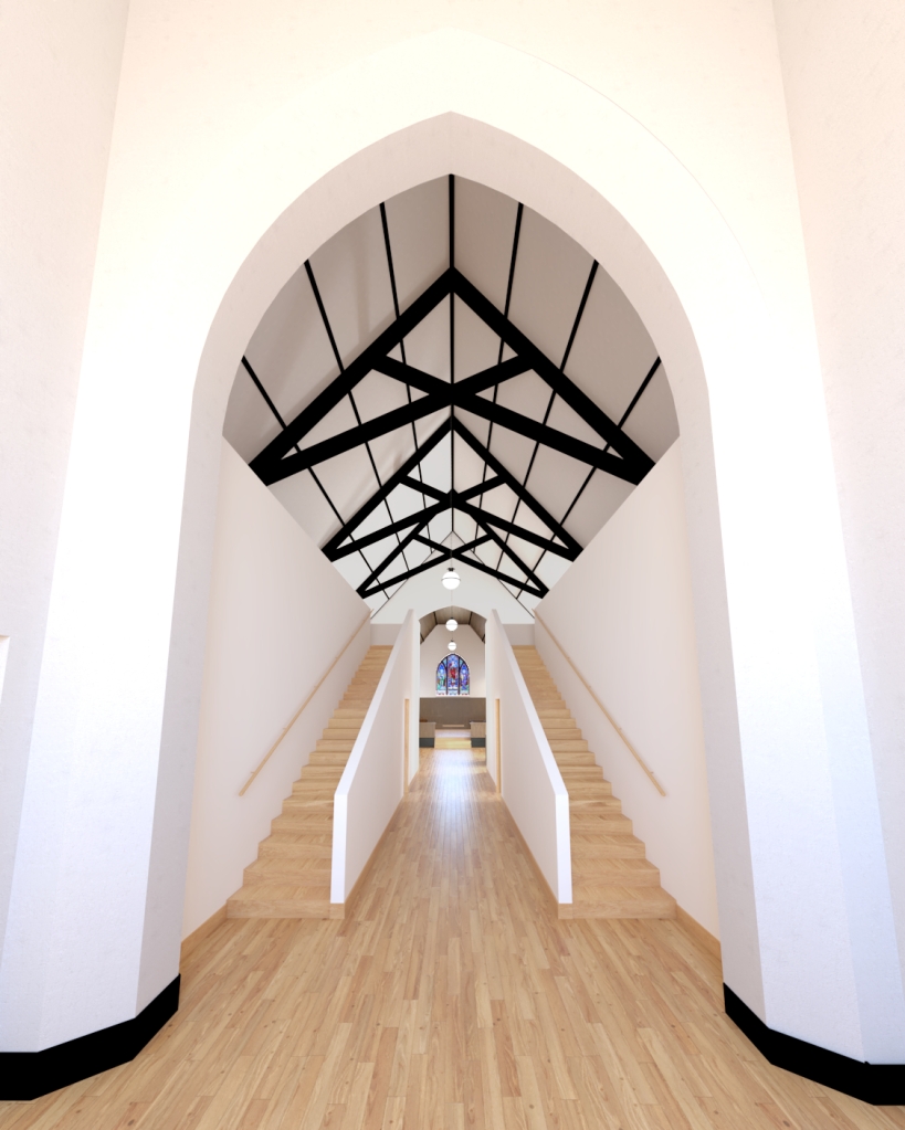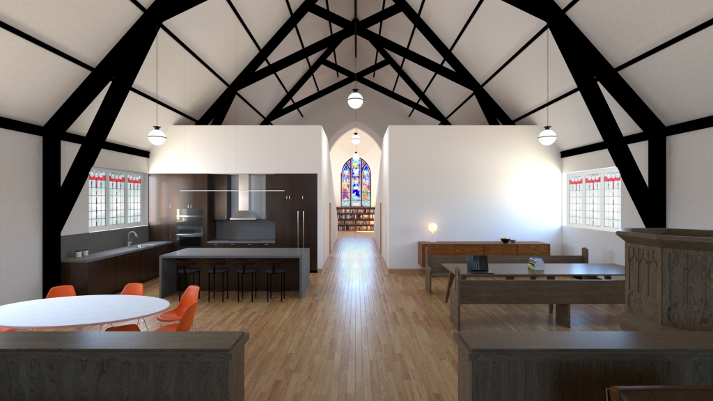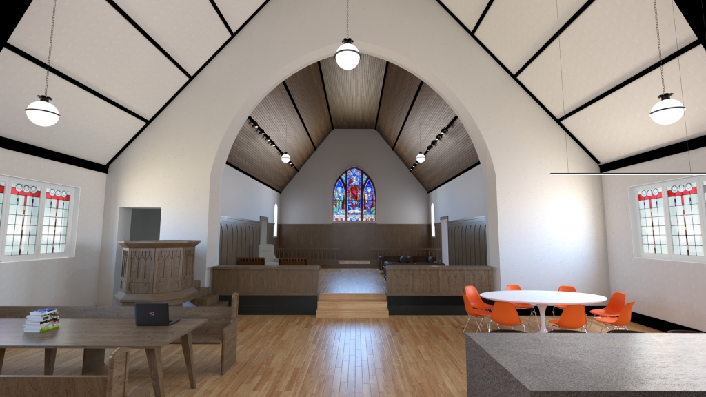 Elevations of the historic church and memorial hall, AtLRG Architecture, 2022