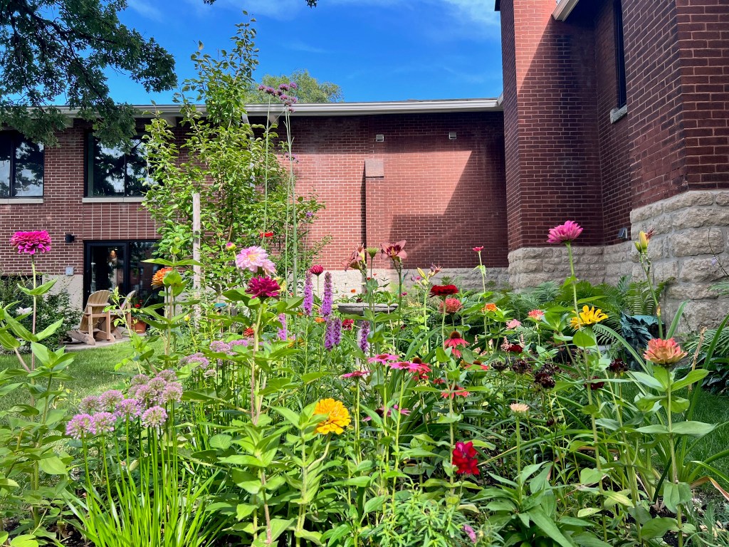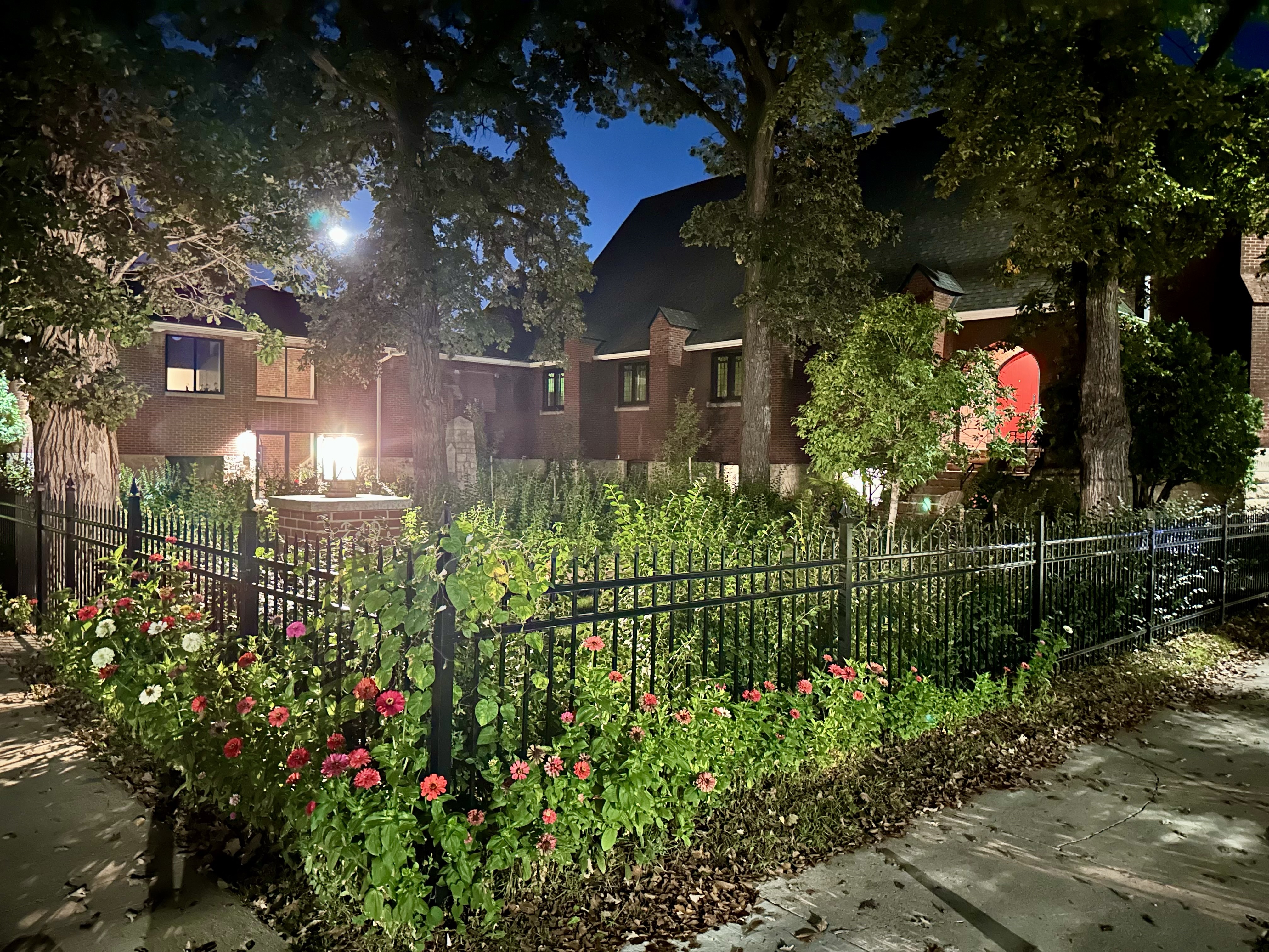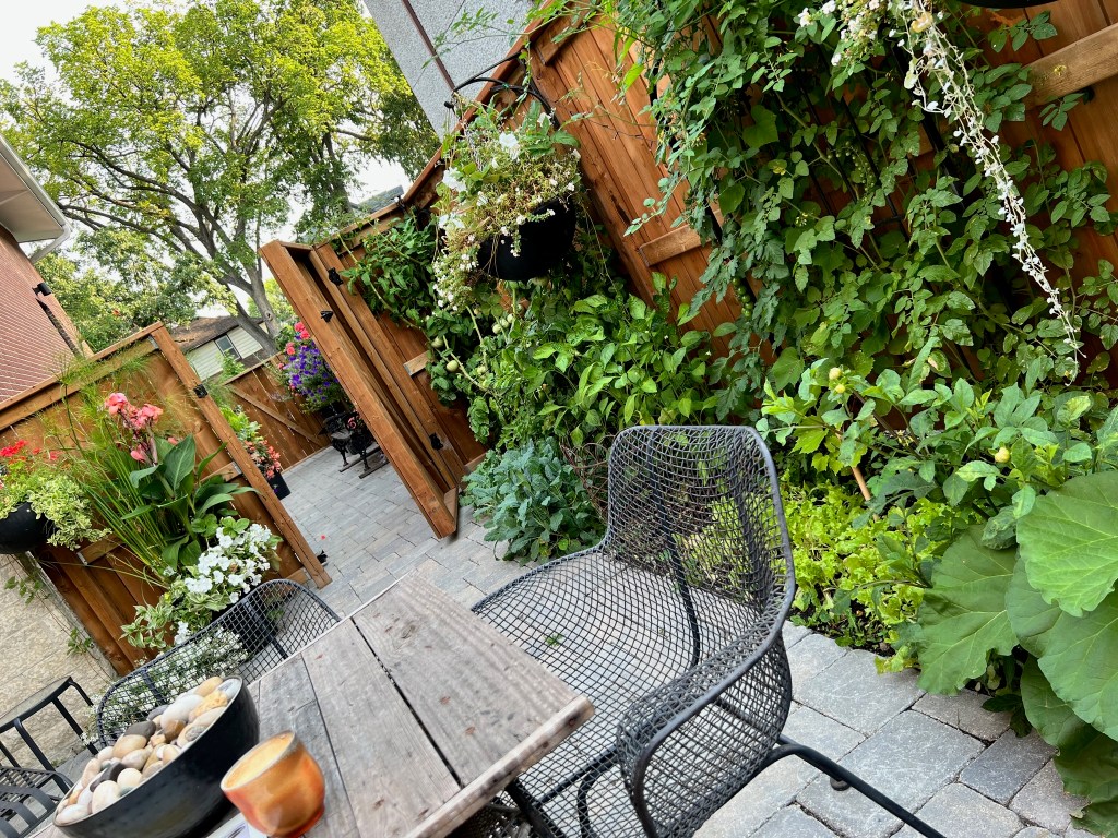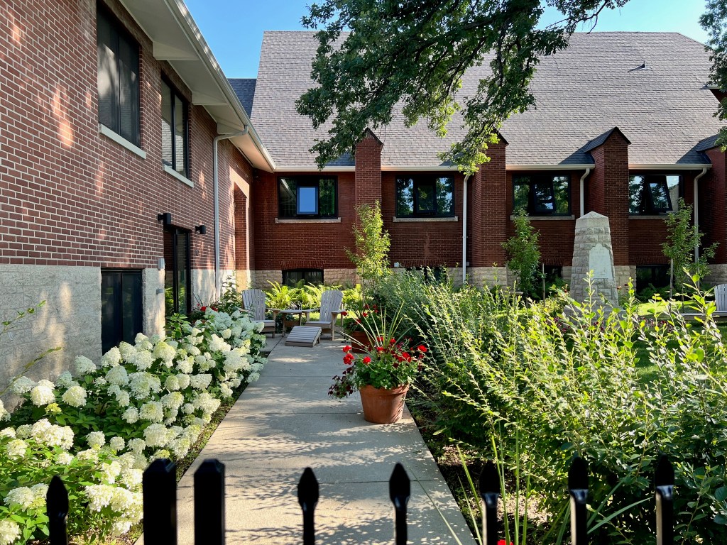Since the restoration began in March 2022, the gardens have been an ongoing labour of love. Several century-old oak and elm trees have graced the site for generations. Recent additions include maple, pear, and spruce trees, a cotoneaster perimeter hedge, boulevard lily beds, and a series of flower gardens that include lilacs, hydrangeas, and roses. Three private garden spaces (for Unit 1, 2, and 6) on the east side of the property are paving stone and pea gravel bordered by grape vines and a wooden fence. The gardens are contemplative spaces, but also seek to be a sponge to help protect the three nearby rivers by reducing stormwater runoff. Click for larger views.